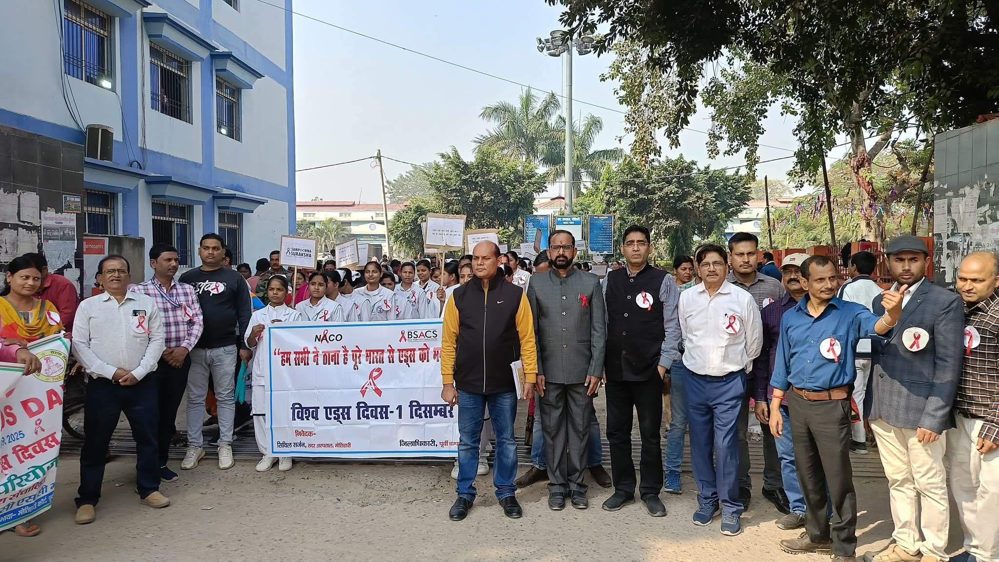 हम सबने ठाना है जिले से एड्स को भगाना है” नारे के साथ सदर अस्पताल से निकाली गईं रैली