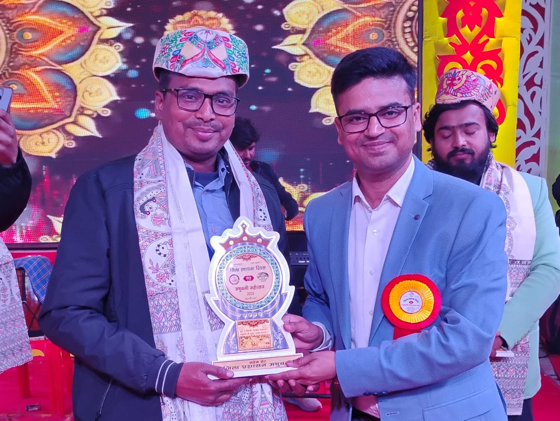 मधुबनी महोत्सव में अंतरराष्ट्रीय सैंड आर्टिस्ट मधुरेंद्र कुमार को “मधुबनी महोत्सव सम्मान 2025” से किया गया सम्मानित मोतिहारी। मधुबनी जिले के वाटसन खेल मैदान परिसर