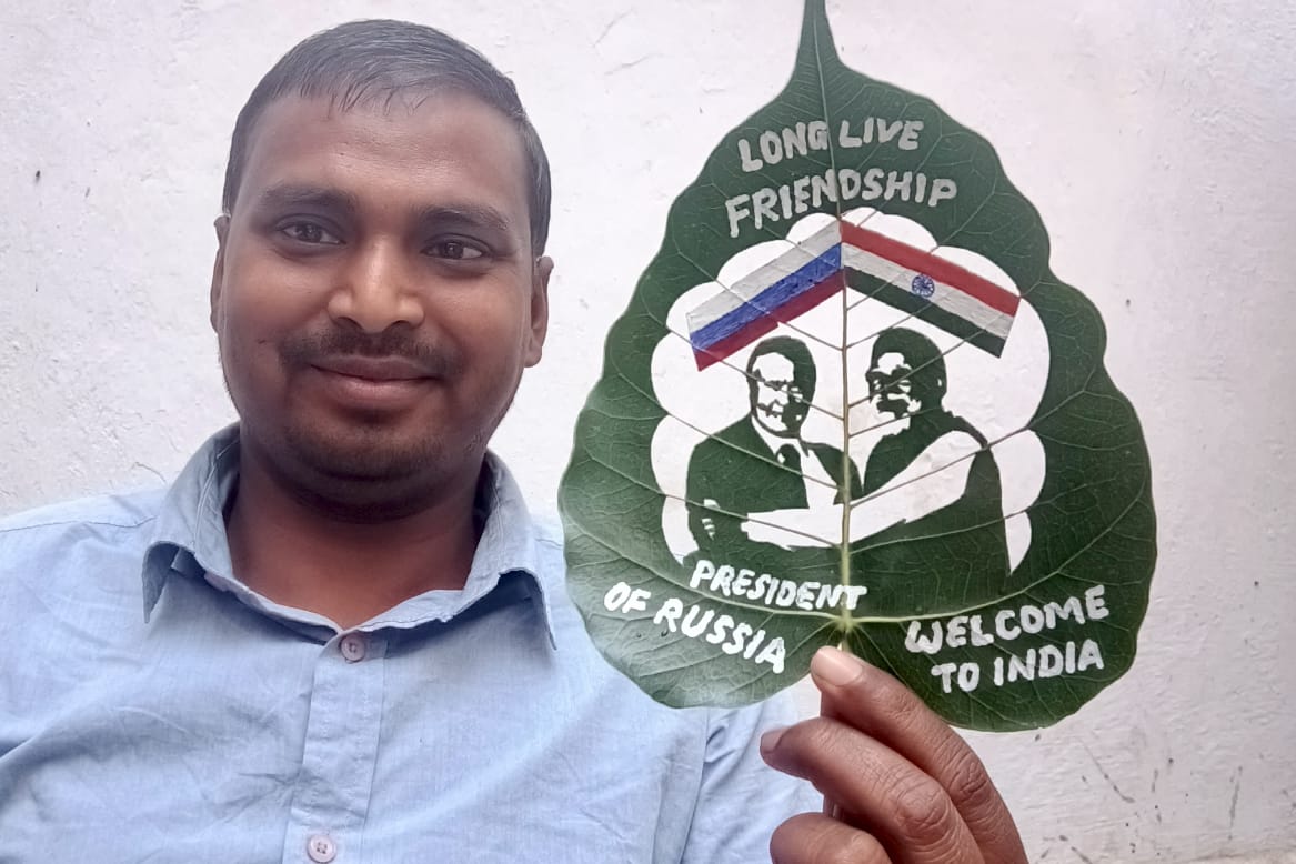 अंतर्राष्ट्रीय लीफ आर्टिस्ट मधुरेंद्र ने कला से किया रूस के राष्ट्रपति का अनोखा स्वागत