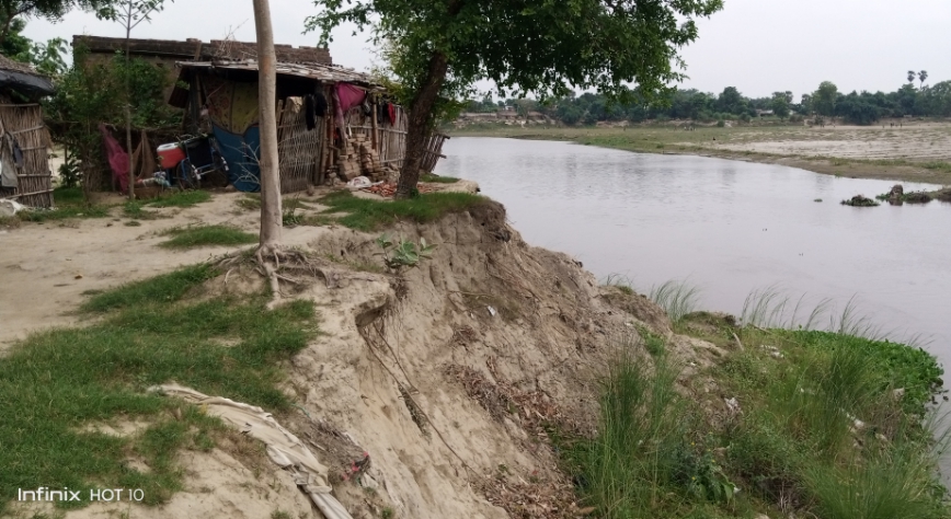 मोतिहारी। पूर्वी चंपारण जिले के सुगौली में लालपरसा दक्षिणी टोला गांव के समीप सिकरहना नदी के तट पर अवस्थित आधा दर्जन घर पर खतरा दिख